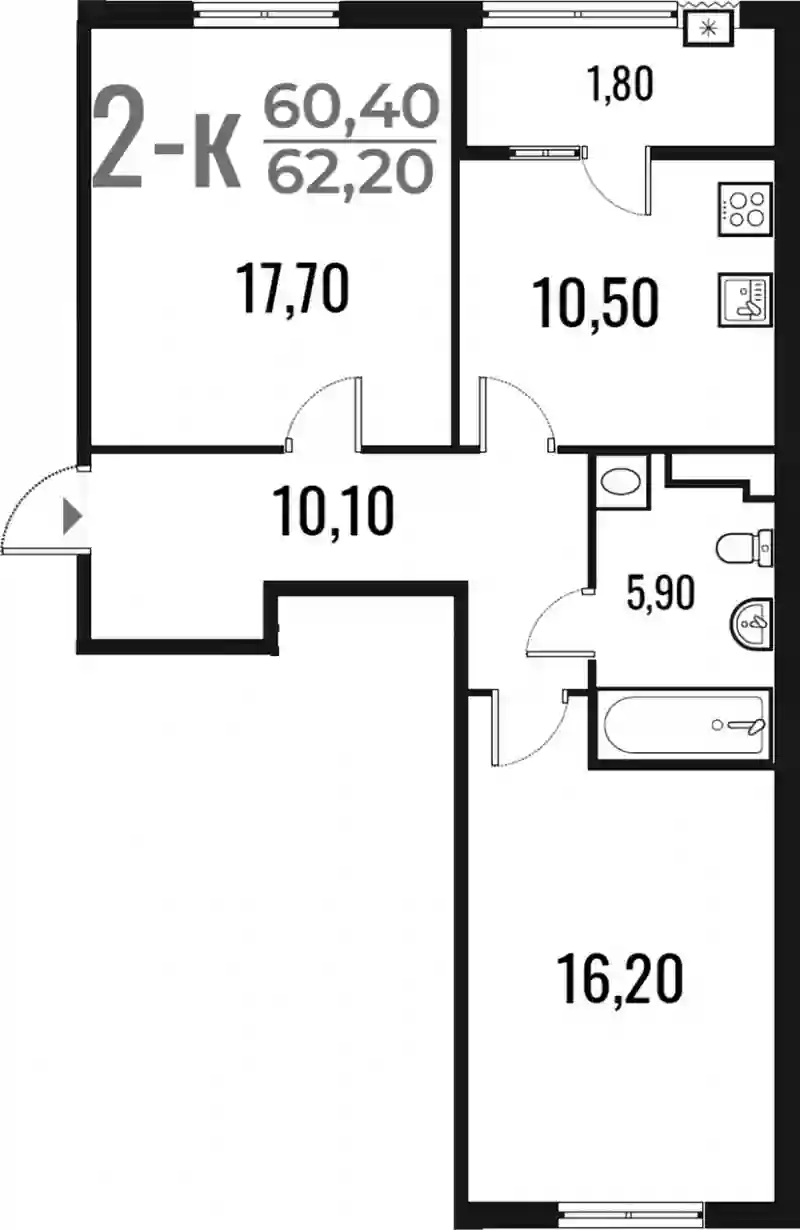 2-к.квартира, 60.4 м², 7 эт. в ЖК Новое Летово Корпус 2