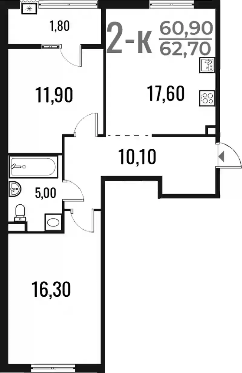 21 492 810 ₽2-к.квартира, 60.3 м², 4 эт.