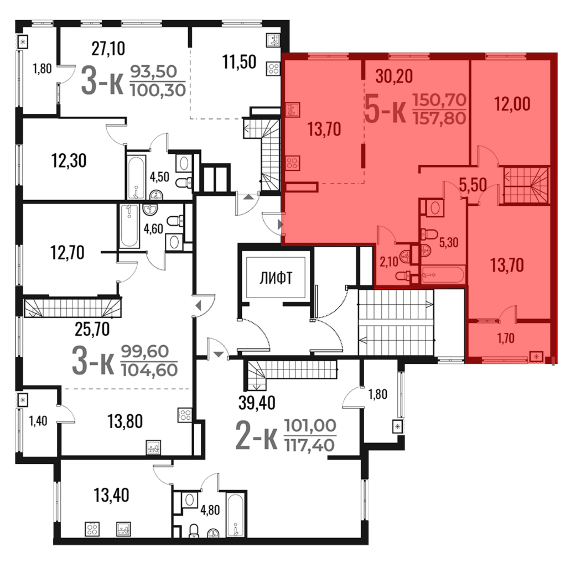 5+к.квартира, 150.7 м², 7 эт. в ЖК Новое Летово Корпус 2
