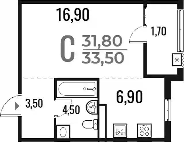 10 791 320 ₽Студия, 33.5 м², 2 эт.