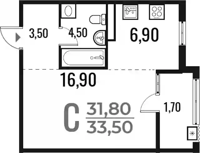 10 791 320 ₽Студия, 33.5 м², 2 эт.