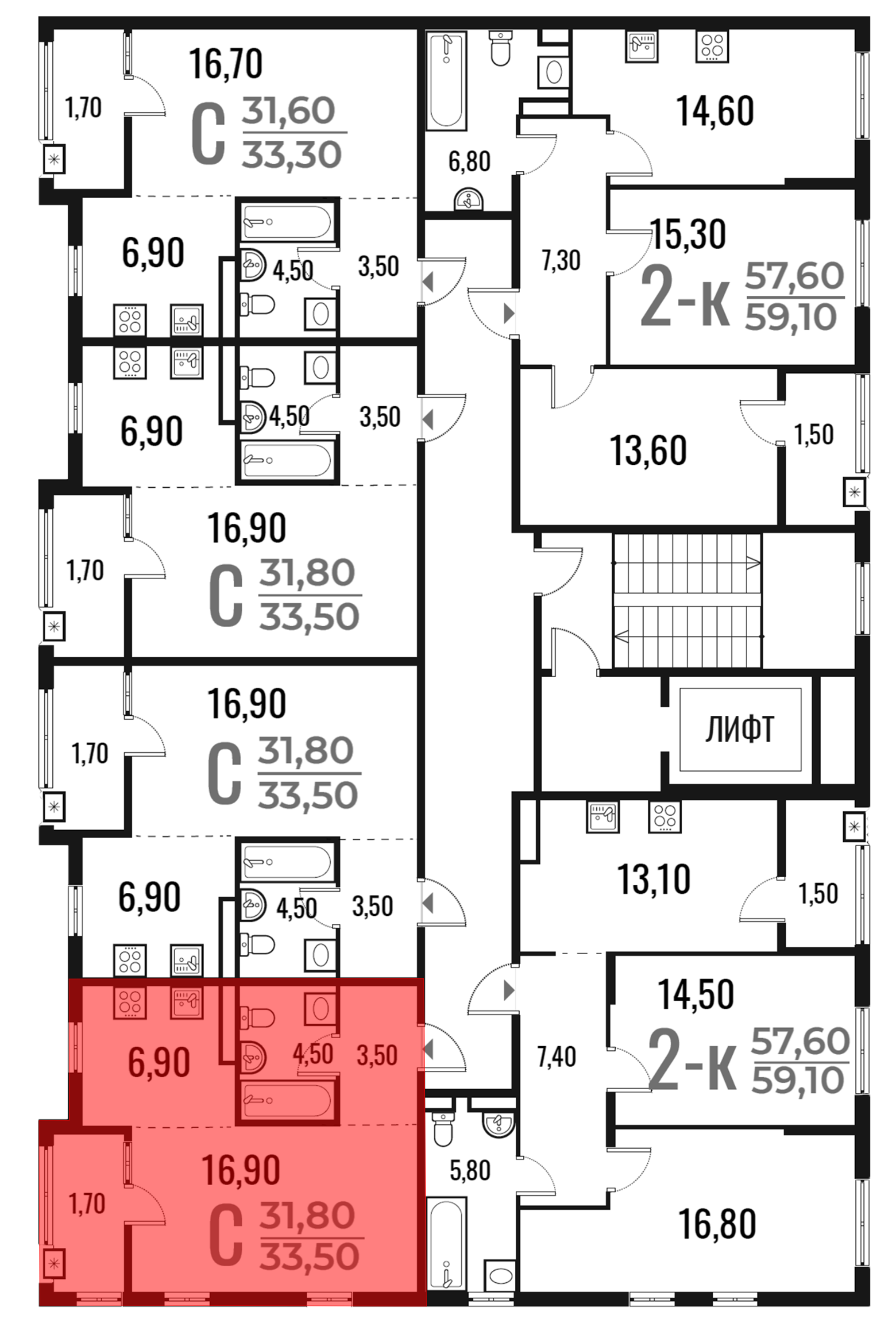 20 847 750 ₽2-к.квартира, 60.9 м², 2 эт.