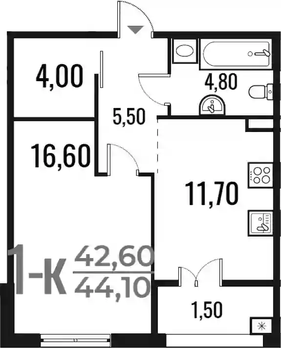 13 019 204 ₽1-к.квартира, 42.4 м², 4 эт.