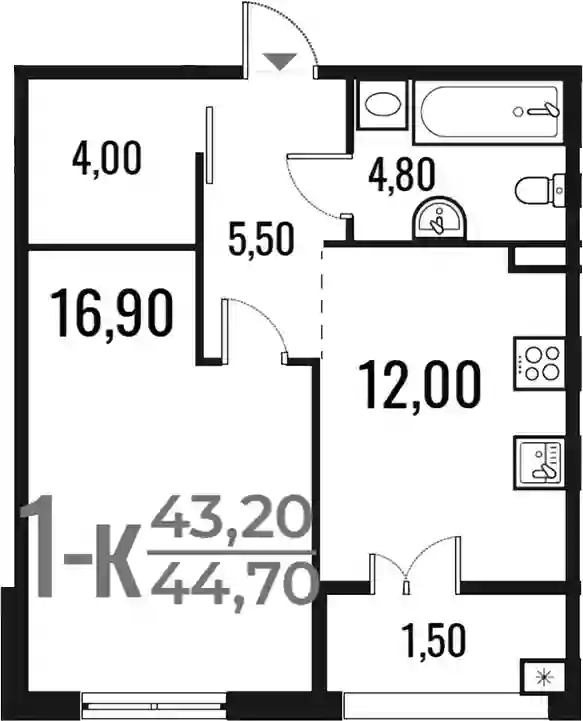 16 114 950 ₽1-к.квартира, 38.6 м², 3 эт.