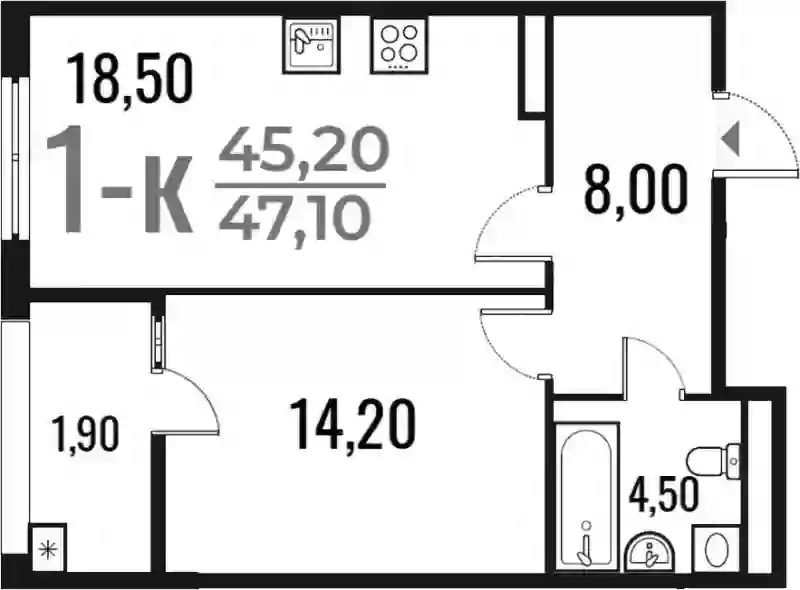 17 177 370 ₽1-к.квартира, 45.2 м², 6 эт.