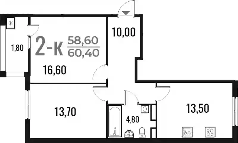 2-к.квартира, 58.6 м², 3 эт. в ЖК Новое Летово Корпус 3