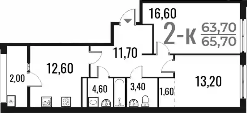 2-к.квартира, 63.7 м², 2 эт. в ЖК Новое Летово Корпус 3