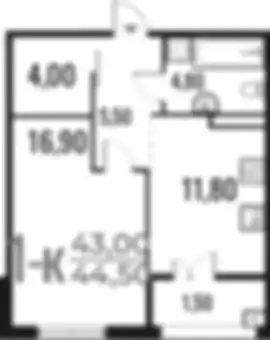 16 273 650 ₽1-к.квартира, 43 м², 5 эт.