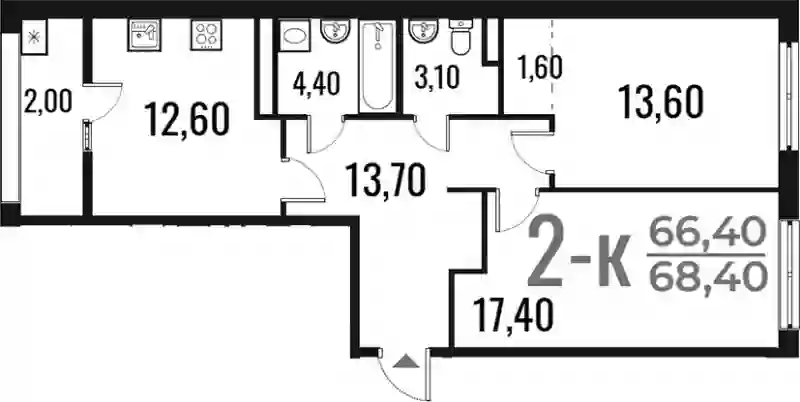 2-к.квартира, 66.4 м², 4 эт. в ЖК Новое Летово Корпус 3