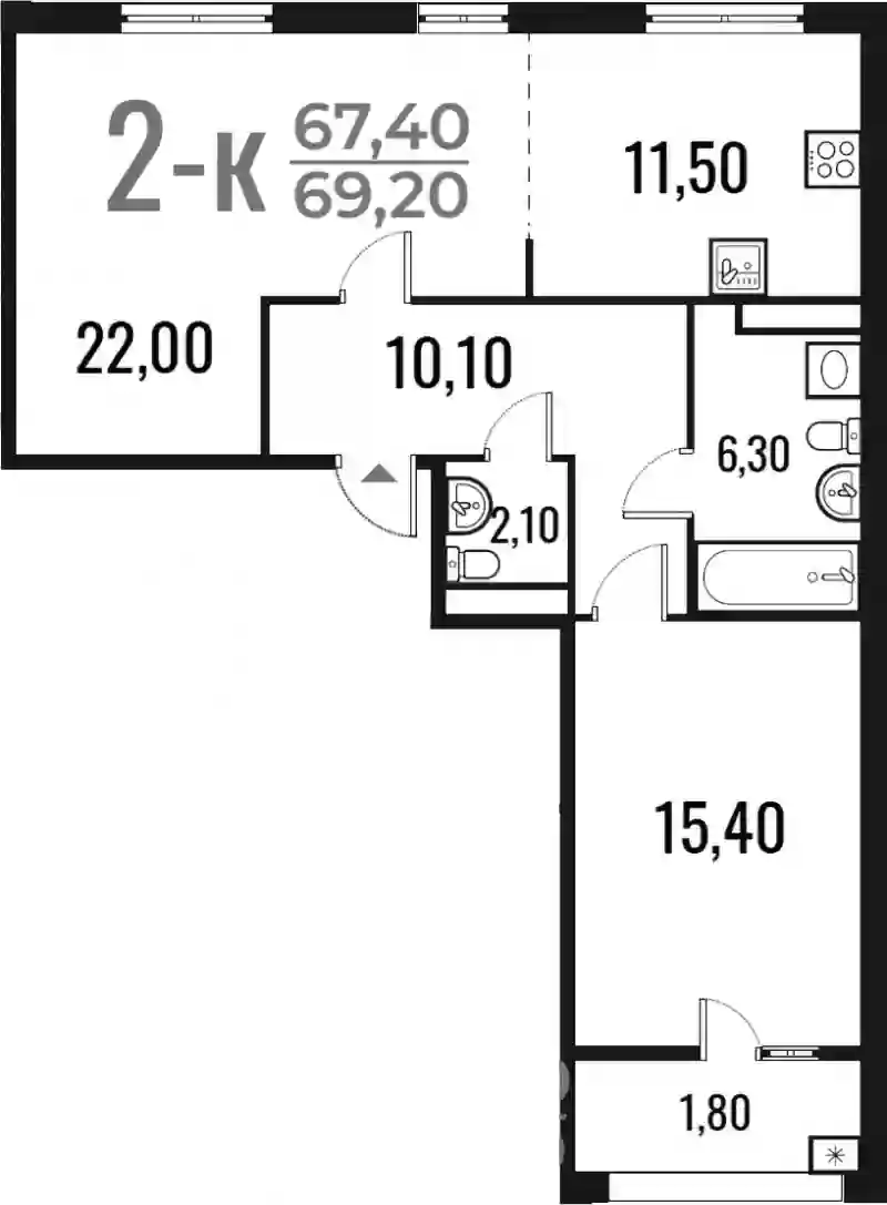 2-к.квартира, 67.4 м², 4 эт. в ЖК Новое Летово Корпус 3