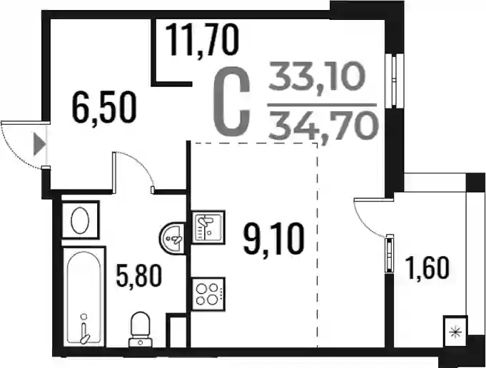 11 070 850 ₽Студия, 31.3 м², 2 эт.
