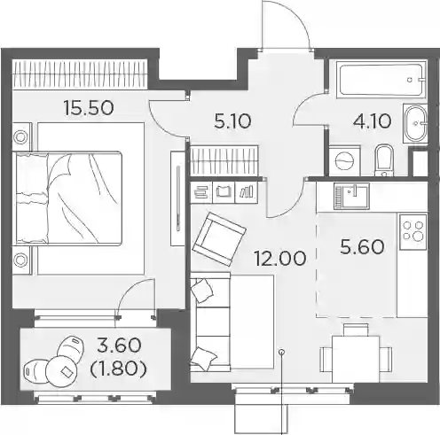 15 220 000 ₽2-к.квартира, 42.1 м², 12 эт.