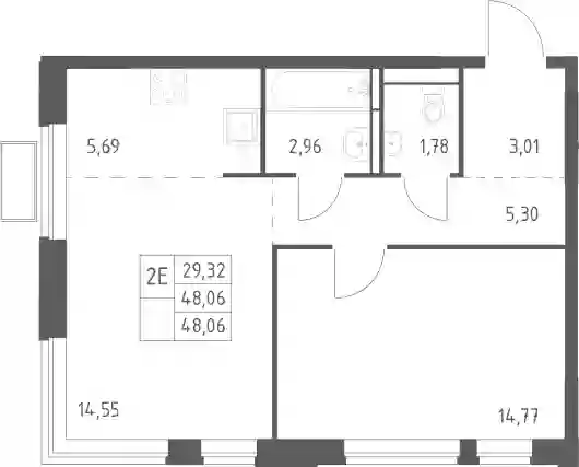 9 345 122 ₽2-к.квартира, 48.06 м², 14 эт.