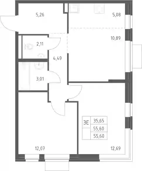 8 610 272 ₽3-к.квартира, 55.6 м², 11 эт.