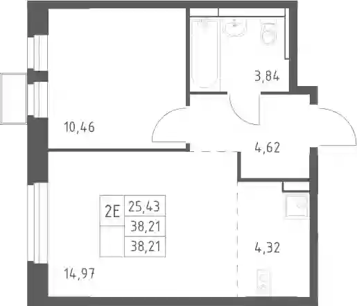 6 458 414 ₽2-к.квартира, 38.24 м², 6 эт.