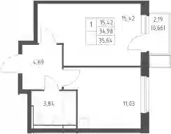 4 955 651 ₽1-к.квартира, 35.55 м², 11 эт.