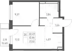 2-к.квартира, 32.86 м², 8 эт. в ЖК Новое Видное Корпус 17
