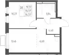 6 065 860 ₽2-к.квартира, 34.57 м², 12 эт.