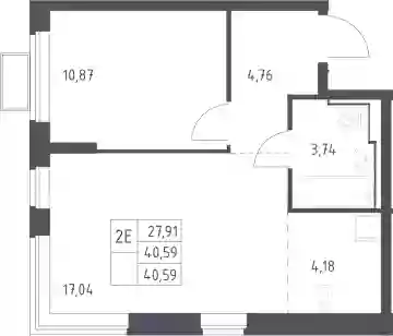 6 500 026 ₽2-к.квартира, 40.91 м², 17 эт.