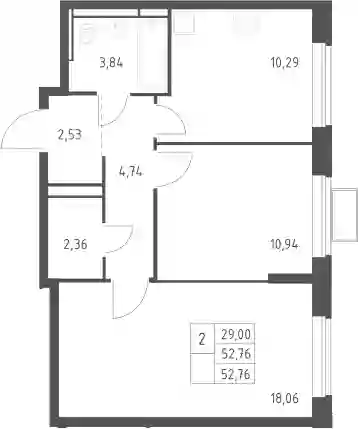 2-к.квартира, 52.76 м², 12 эт. в ЖК Новое Видное Корпус 17