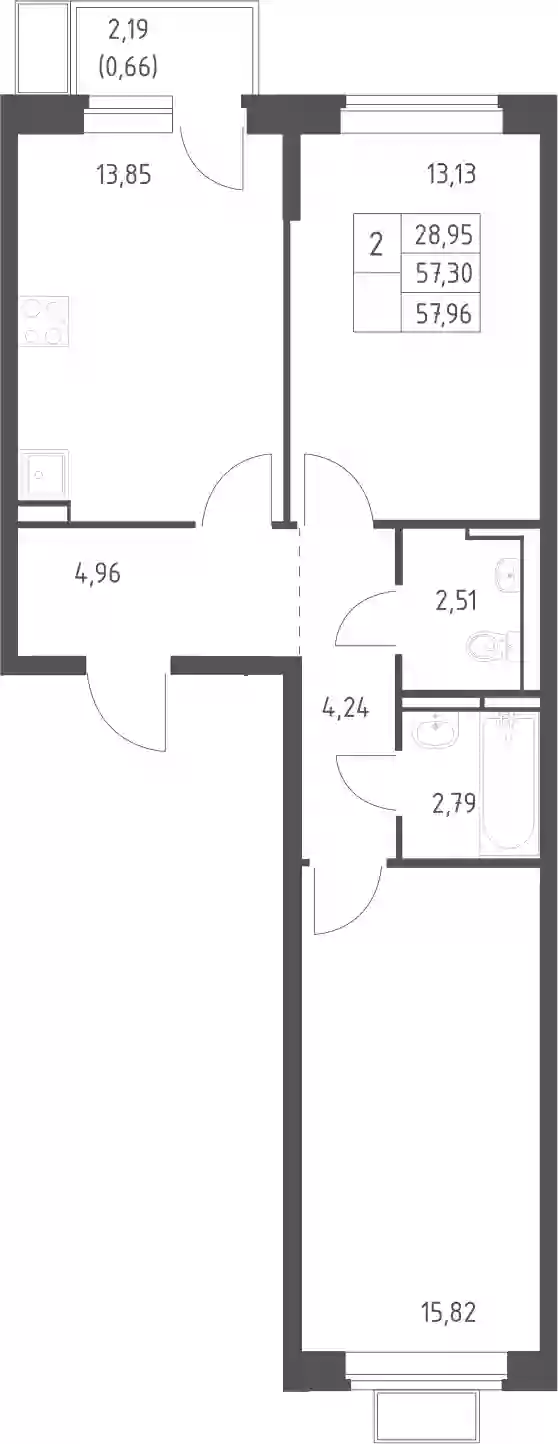 9 479 393 ₽2-к.квартира, 59.82 м², 15 эт.