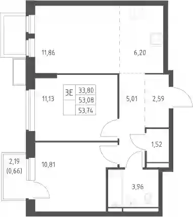 10 174 303 ₽3-к.квартира, 55.6 м², 11 эт.