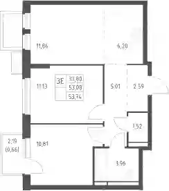 10 174 303 ₽3-к.квартира, 55.6 м², 11 эт.
