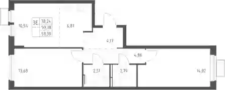 9 884 938 ₽3-к.квартира, 60.29 м², 10 эт.
