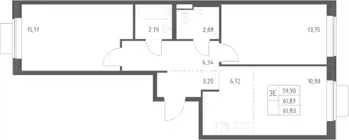 11 762 873 ₽3-к.квартира, 61.83 м², 17 эт.