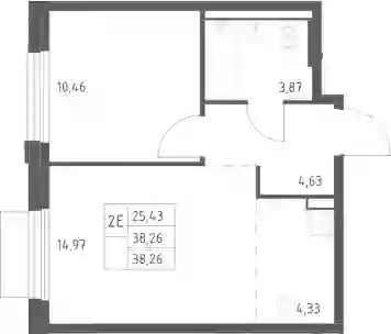 10 508 214 ₽2-к.квартира, 38.22 м², 1 эт.