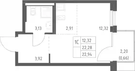 9 091 087 ₽Студия, 22.28 м², 8 эт.