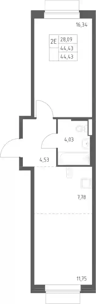 11 354 125 ₽2-к.квартира, 44.43 м², 2 эт.