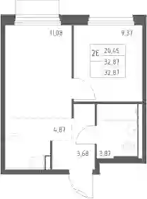 7 386 824 ₽2-к.квартира, 32.93 м², 9 эт.
