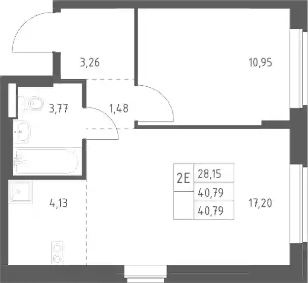 11 670 895 ₽2-к.квартира, 40.79 м², 1 эт.