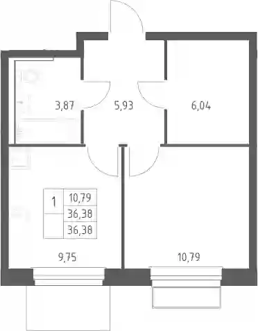 11 463 768 ₽1-к.квартира, 36.38 м², 3 эт.