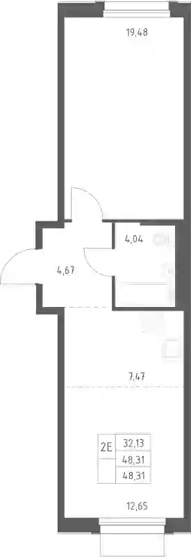 8 829 407 ₽2-к.квартира, 48.17 м², 1 эт.