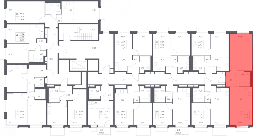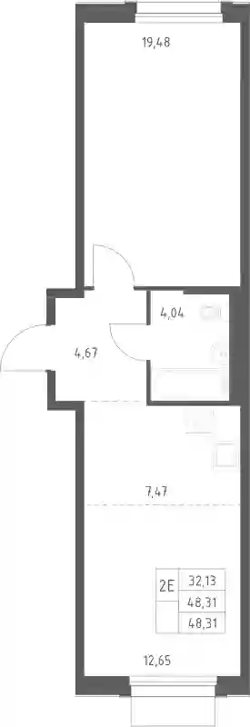 8 829 407 ₽2-к.квартира, 48.17 м², 1 эт.
