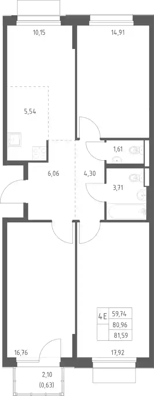 4-к.квартира, 80.96 м², 9 эт. в ЖК Новое Внуково Корпус 32