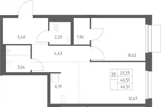 10 131 924 ₽2-к.квартира, 46.51 м², 3 эт.