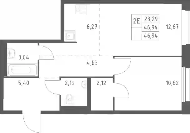 12 536 676 ₽2-к.квартира, 48.15 м², 2 эт.