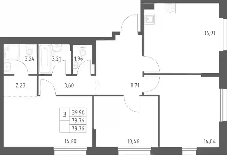 22 289 902 ₽3-к.квартира, 79.76 м², 1 эт.