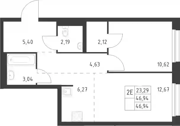 10 796 388 ₽2-к.квартира, 46.94 м², 1 эт.