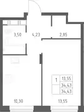 7 683 509 ₽1-к.квартира, 34.43 м², 5 эт.