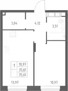 8 024 030 ₽1-к.квартира, 35.61 м², 15 эт.