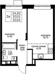 8 329 754 ₽2-к.квартира, 37.03 м², 20 эт.