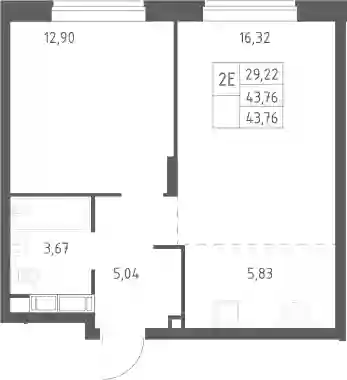 9 700 474 ₽2-к.квартира, 43.76 м², 19 эт.