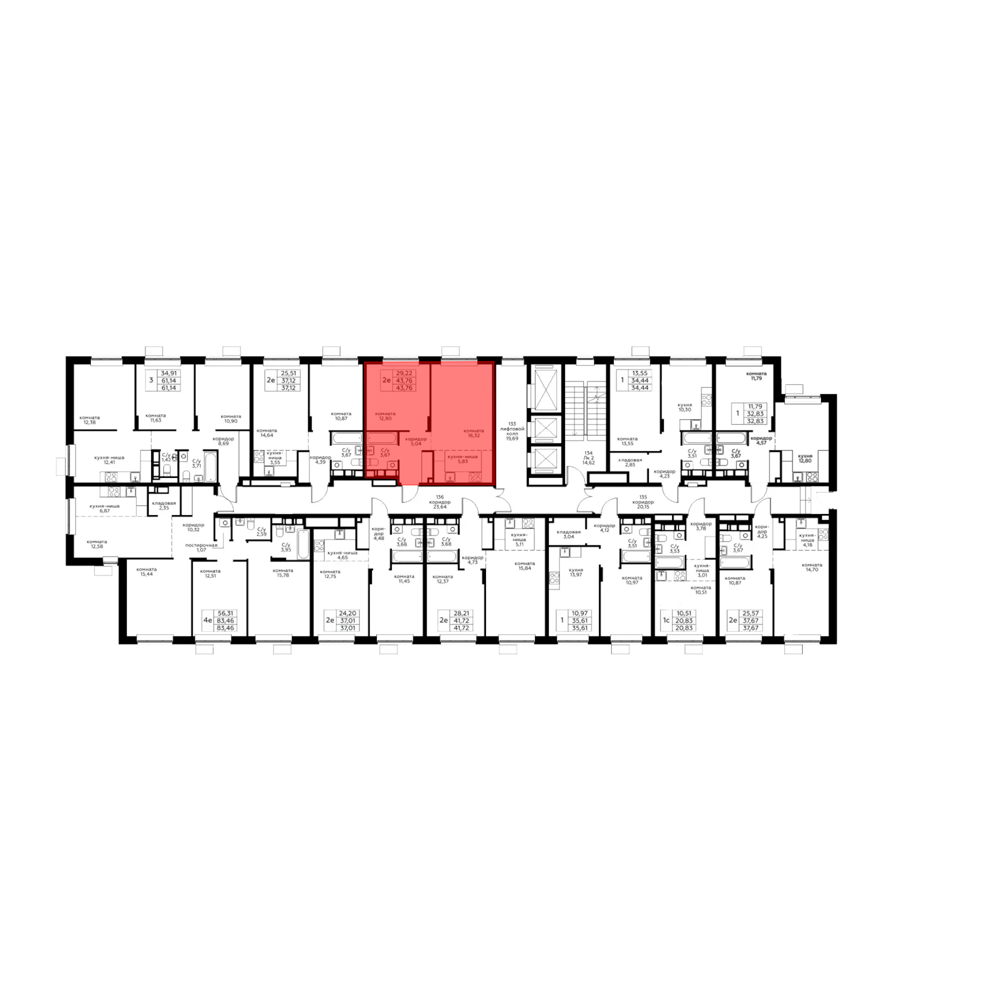 2-к.квартира, 43.76 м², 19 эт. в ЖК Новоград Павлино Корпус 32