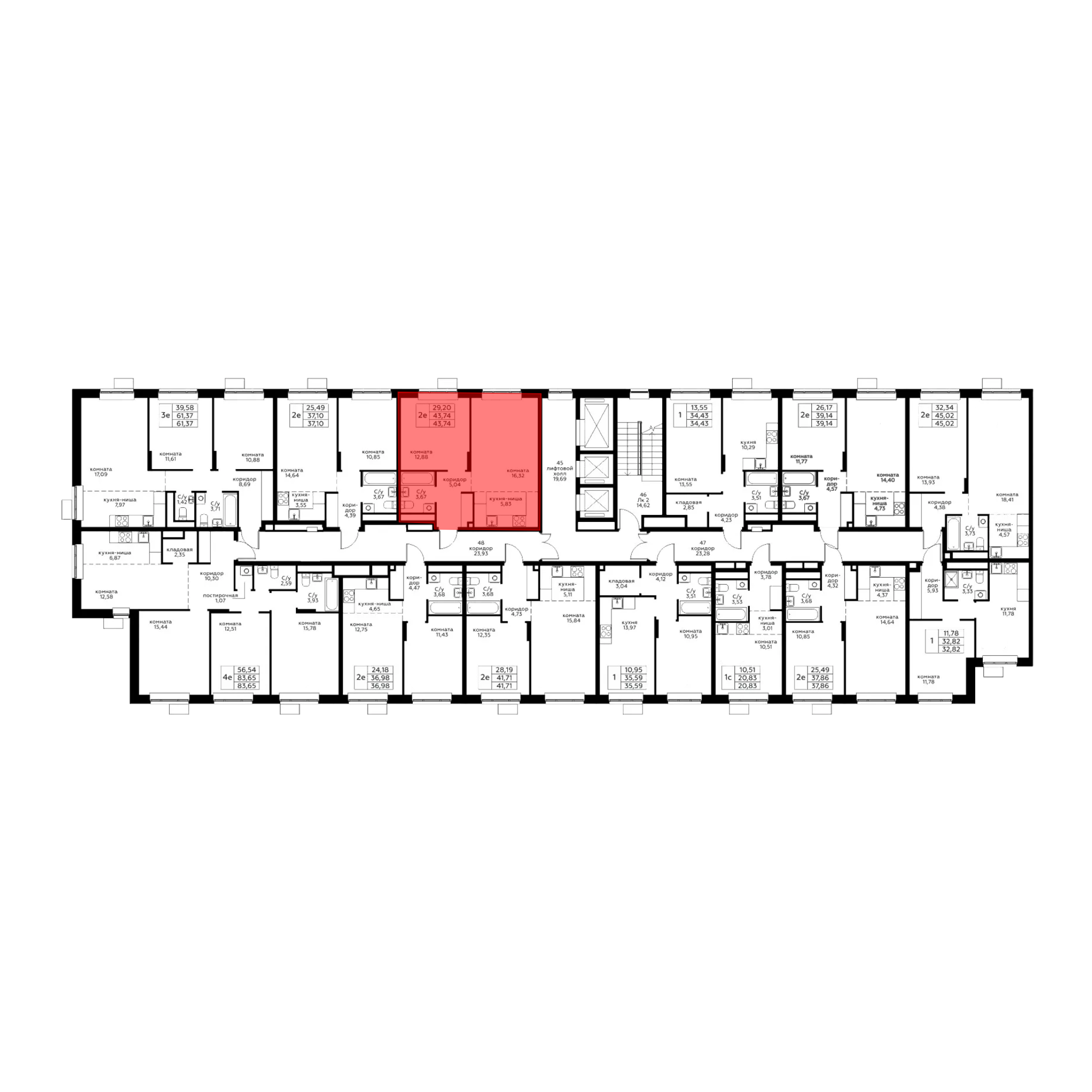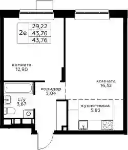 2-к.квартира, 43.76 м², 7 эт. в ЖК Новоград Павлино Корпус 32