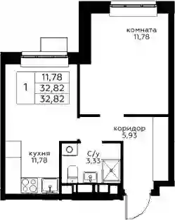 1-к.квартира, 32.82 м², 12 эт. в ЖК Новоград Павлино Корпус 33