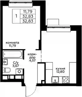 1-к.квартира, 32.83 м², 22 эт. в ЖК Новоград Павлино Корпус 33